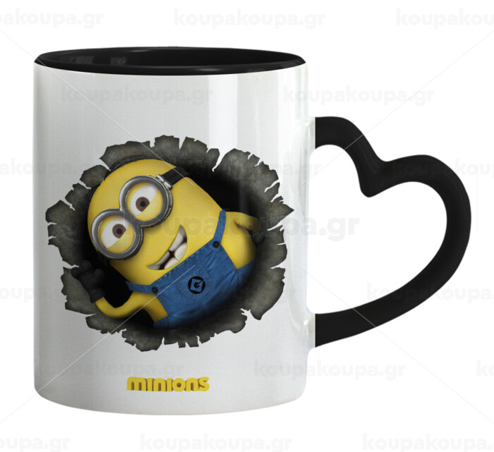 Minions hi, Mug heart black handle, ceramic, 330ml