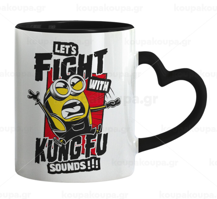 Minions Let's fight with kung fu sounds, Mug heart black handle, ceramic, 330ml