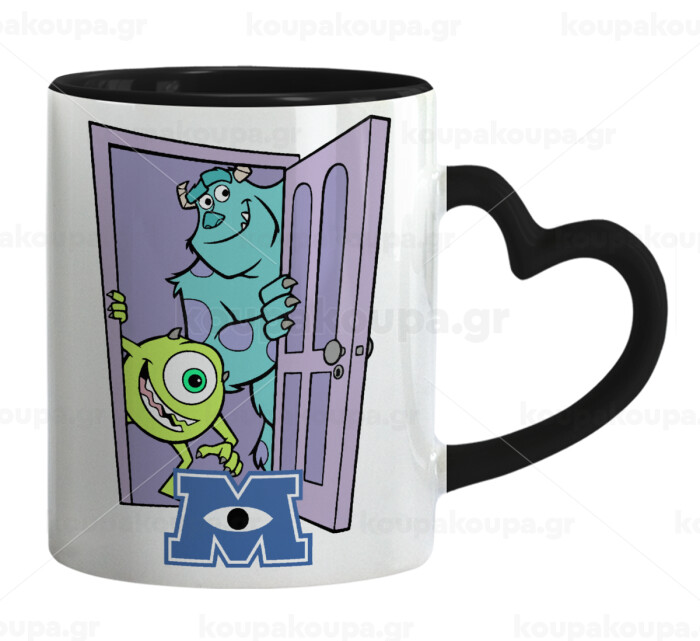 Monster inc, Mug heart black handle, ceramic, 330ml
