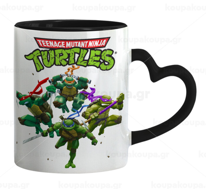 Ninja turtles, Mug heart black handle, ceramic, 330ml