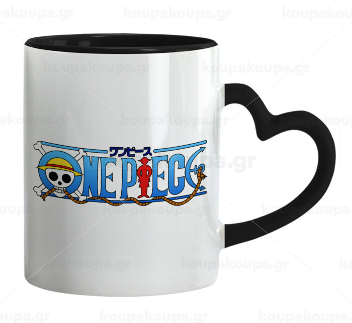 Onepiece logo, Mug heart black handle, ceramic, 330ml