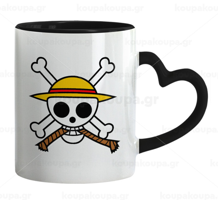 Onepiece skull, Mug heart black handle, ceramic, 330ml