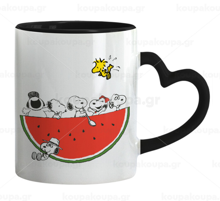 Snoopy summer, Mug heart black handle, ceramic, 330ml