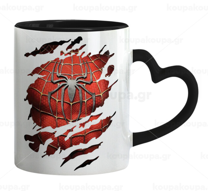 Spiderman cracked, Mug heart black handle, ceramic, 330ml