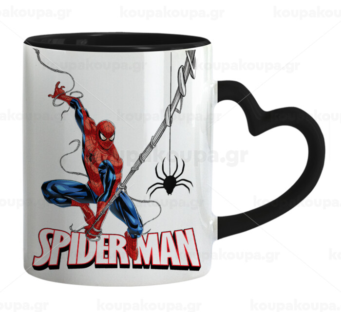 Spiderman fly, Mug heart black handle, ceramic, 330ml