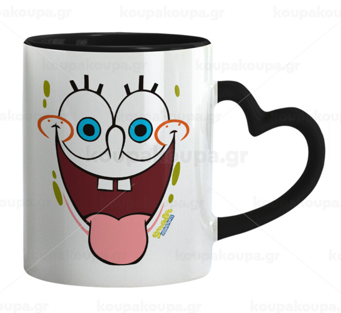 SpongeBob SquarePants smile, Mug heart black handle, ceramic, 330ml