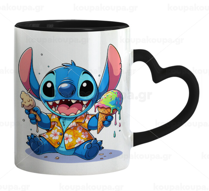 Stitch Ice cream, Mug heart black handle, ceramic, 330ml