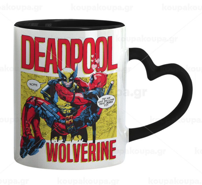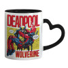 Superhero Deadpool Wolverine, Mug heart black handle, ceramic, 330ml