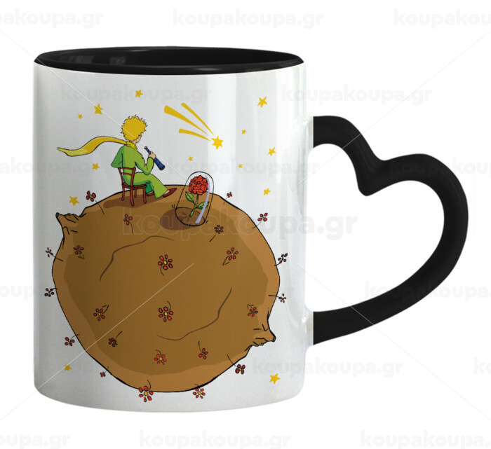 The Little prince planet, Mug heart black handle, ceramic, 330ml