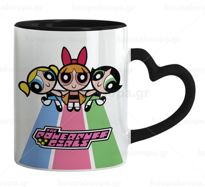 The powerpuff girls , Mug heart black handle, ceramic, 330ml