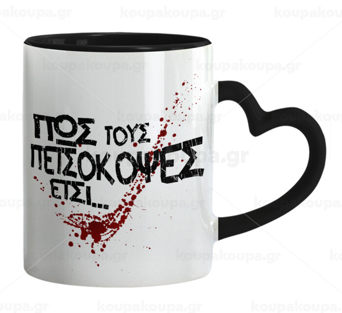 Πως τους πετσόκοψες έτσι..., Mug heart black handle, ceramic, 330ml