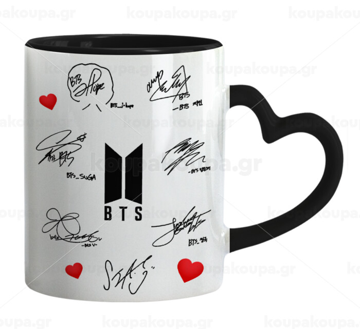BTS signatures, Mug heart black handle, ceramic, 330ml