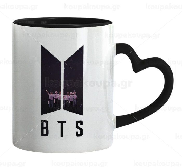 BTS, Mug heart black handle, ceramic, 330ml