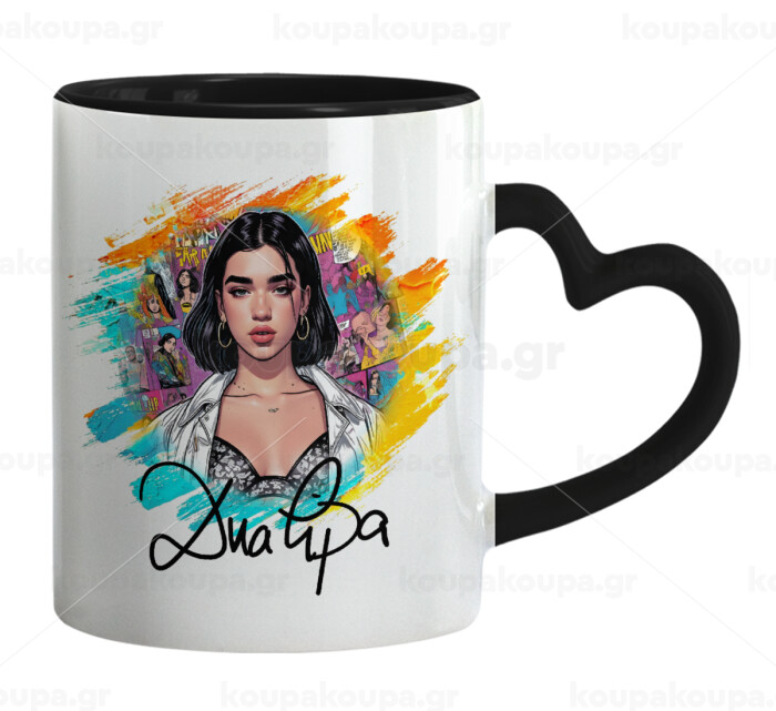 Dua lipa, Mug heart black handle, ceramic, 330ml
