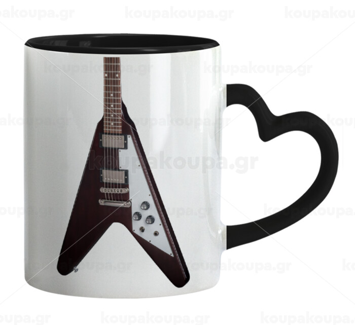 Guitar flying V, Mug heart black handle, ceramic, 330ml