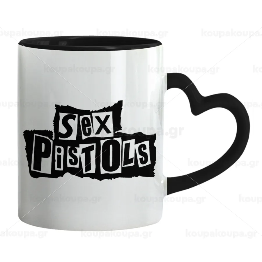 Sex Pistols, Mug heart black handle, ceramic, 330ml