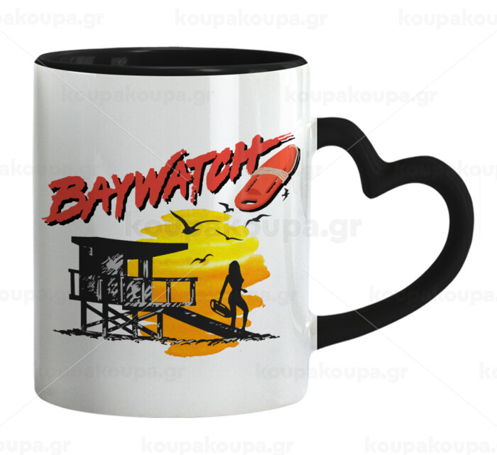 Baywatch, Mug heart black handle, ceramic, 330ml
