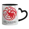 GOT House Targaryen, Fire Blood, Mug heart black handle, ceramic, 330ml