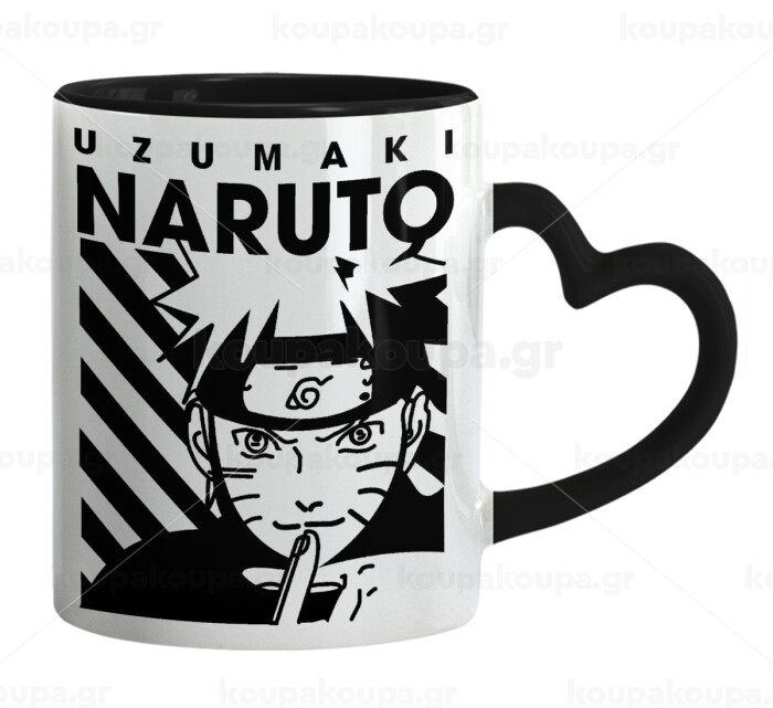Naruto uzumaki, Mug heart black handle, ceramic, 330ml