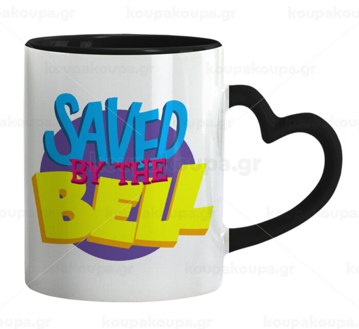Saved by the Bell, Mug heart black handle, ceramic, 330ml