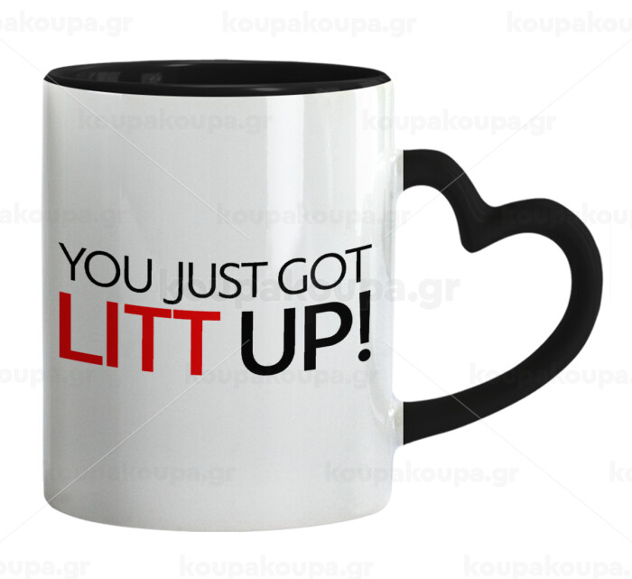 Suits You Just Got Litt Up! , Mug heart black handle, ceramic, 330ml