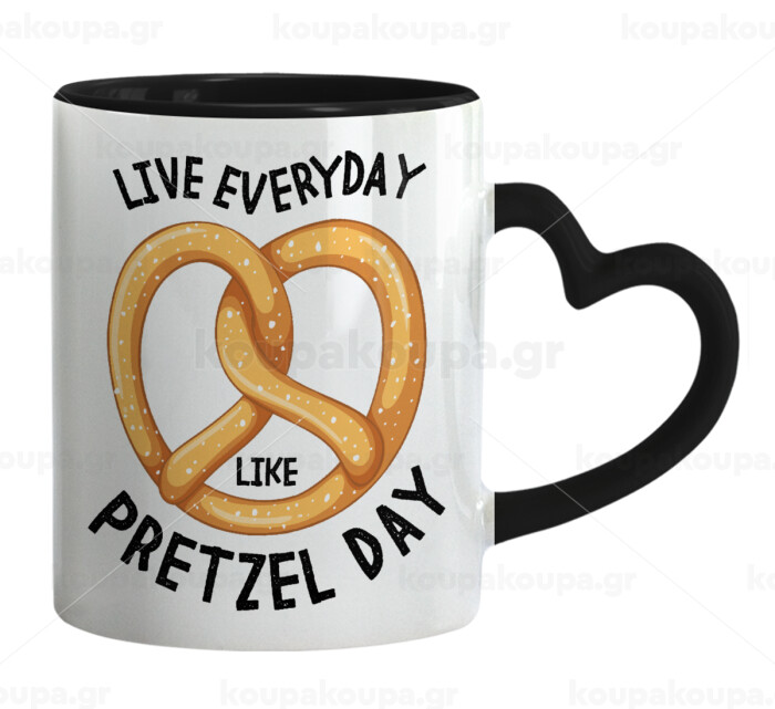 The office, Live every day like pretzel day, Mug heart black handle, ceramic, 330ml