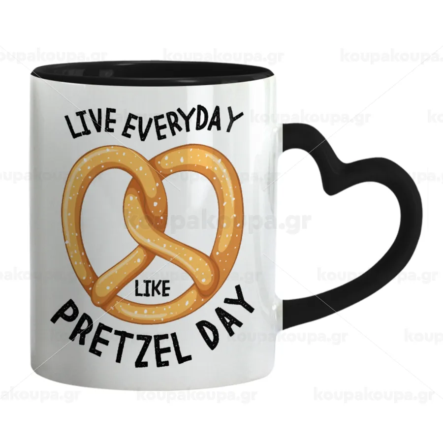 The office, Live every day like pretzel day, Mug heart black handle, ceramic, 330ml