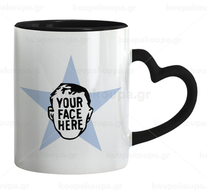 A glossy, high-quality mug with a heart-shaped handle and vibrant colors. Dishwasher safe and suitable for microwave use. Use it for hot and cold drinks.
