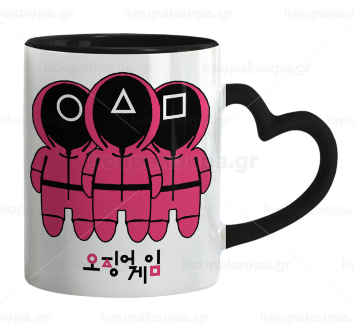 The squid game, Mug heart black handle, ceramic, 330ml