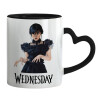 Wednesday Adams, dance with hands, Mug heart black handle, ceramic, 330ml