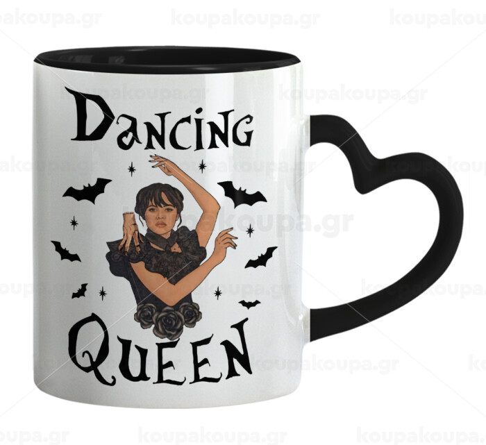 Wednesday Addams Dance, Mug heart black handle, ceramic, 330ml