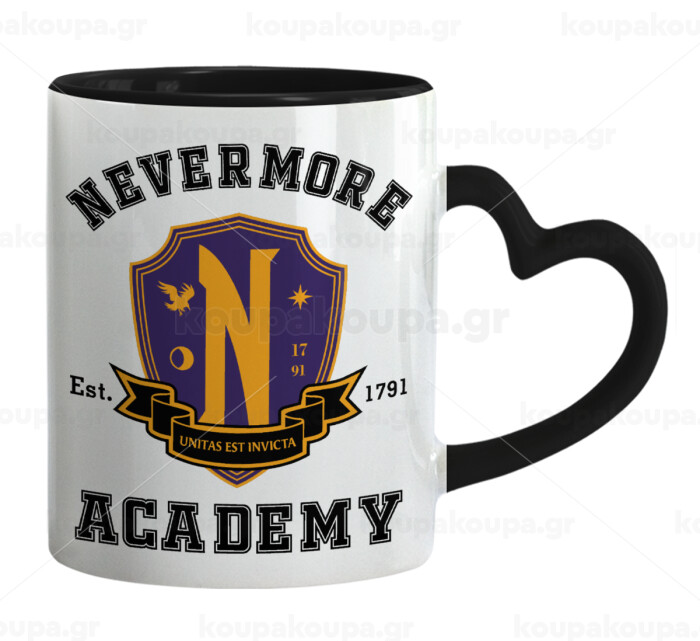Wednesday Nevermore Academy University, Mug heart black handle, ceramic, 330ml