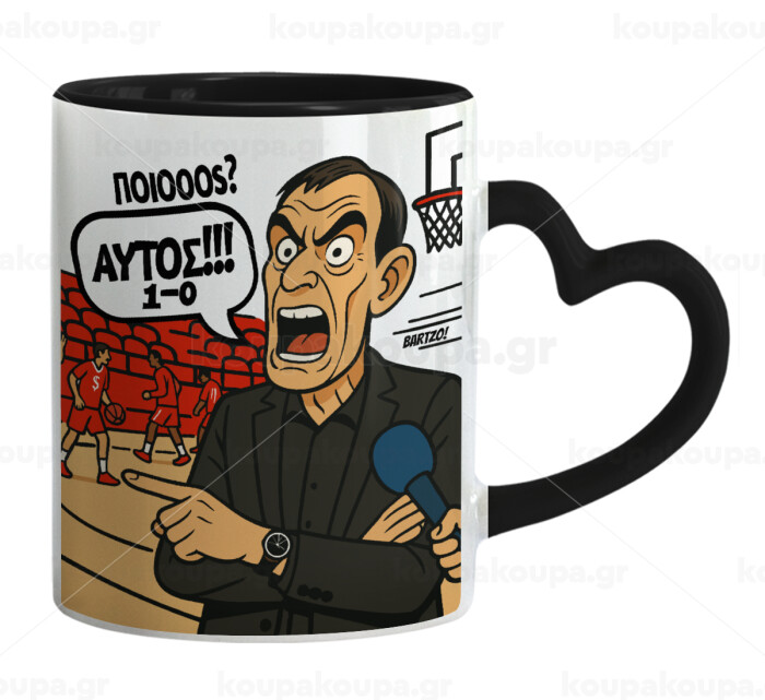 Μπαρτζό, Ποιος? Αυτός!!! 1-0, Mug heart black handle, ceramic, 330ml