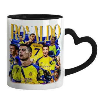 Cristiano Ronaldo Al Nassr, Mug heart black handle, ceramic, 330ml
