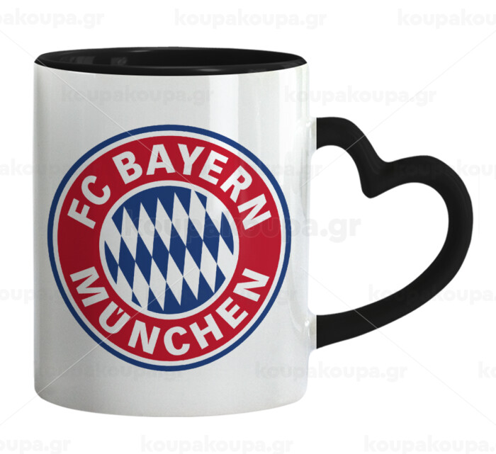 FC Bayern Munich, Mug heart black handle, ceramic, 330ml