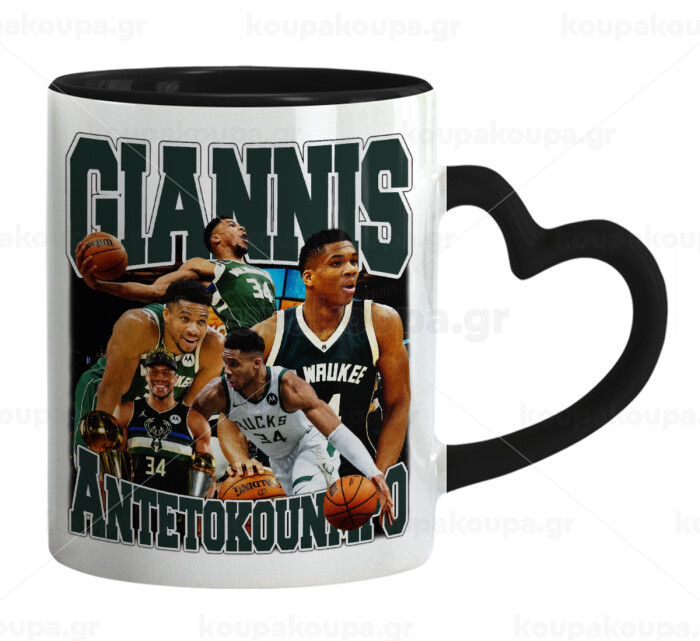 Giannis Antetokounmpo, Mug heart black handle, ceramic, 330ml