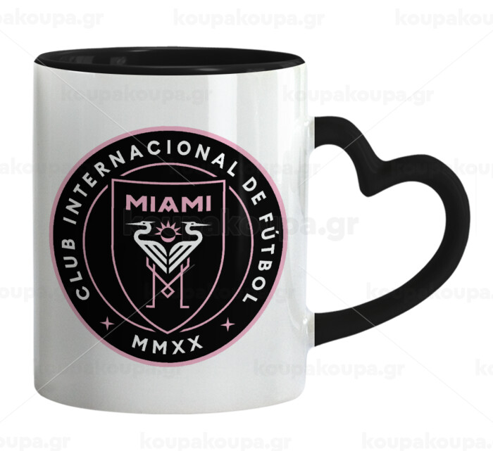 Inter Miami CF, Mug heart black handle, ceramic, 330ml
