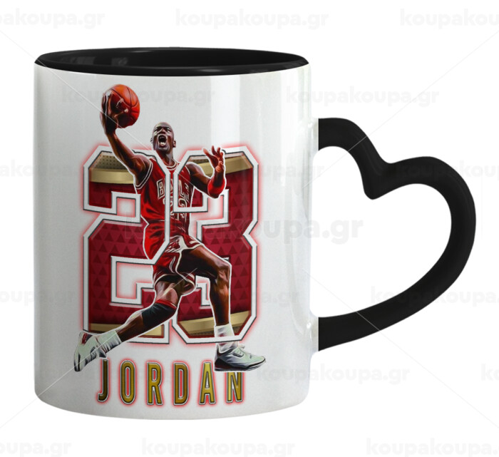 Jordan 23, Mug heart black handle, ceramic, 330ml