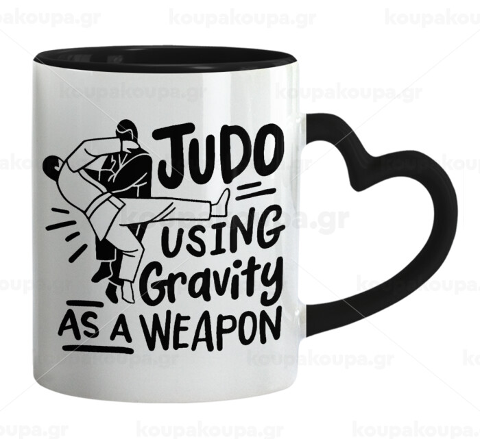 Judo using gravity as a weapon, Mug heart black handle, ceramic, 330ml