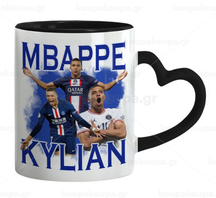 Kylian Mbappé, Mug heart black handle, ceramic, 330ml