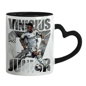 Vinícius Júnior (Βινίσιους Ζούνιορ), Mug heart black handle, ceramic, 330ml