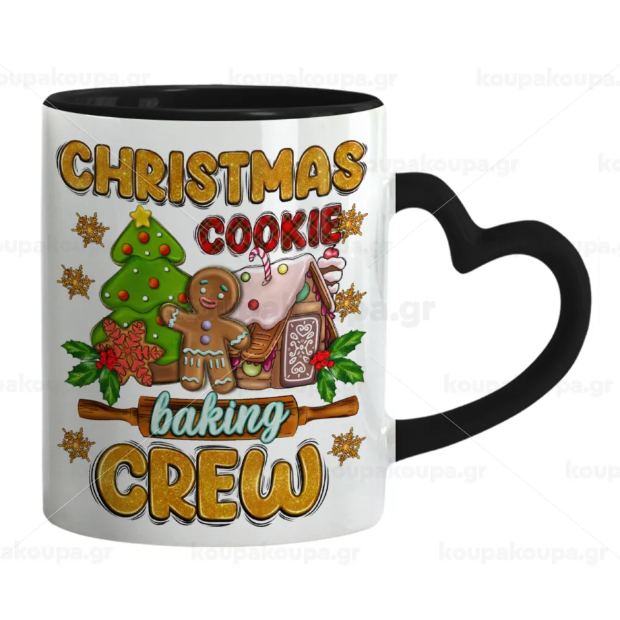 Christmas Cookie Baking Crew, Mug heart black handle, ceramic, 330ml