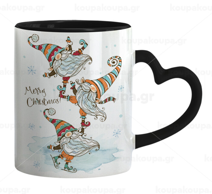 Christmas nordic gnomes, Mug heart black handle, ceramic, 330ml