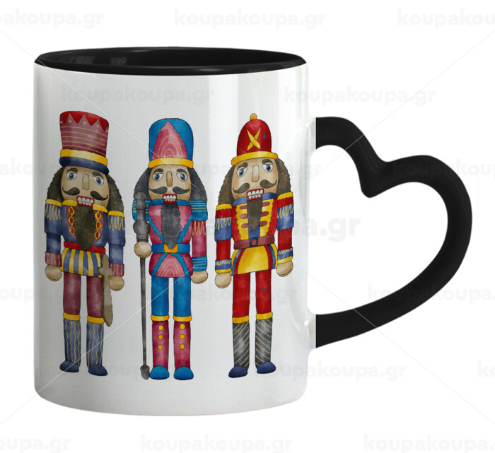 Christmas Nutcrackers, Mug heart black handle, ceramic, 330ml