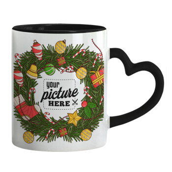 A glossy, high-quality mug with a heart-shaped handle and vibrant colors. Dishwasher safe and suitable for microwave use. Use it for hot and cold drinks.