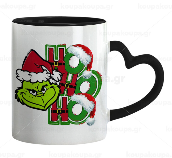 Grinch ho ho ho, Mug heart black handle, ceramic, 330ml
