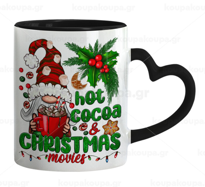 Hot cocoa and Christmas movies, Mug heart black handle, ceramic, 330ml