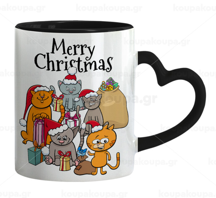 Merry Christmas Cats, Mug heart black handle, ceramic, 330ml