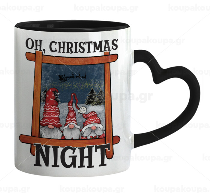 Oh Christmas Night, Mug heart black handle, ceramic, 330ml