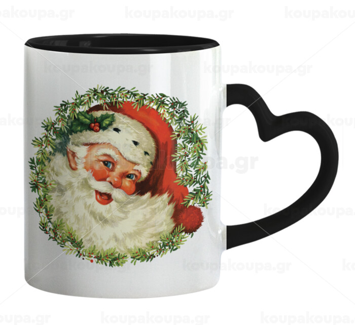 Santa Claus, Mug heart black handle, ceramic, 330ml